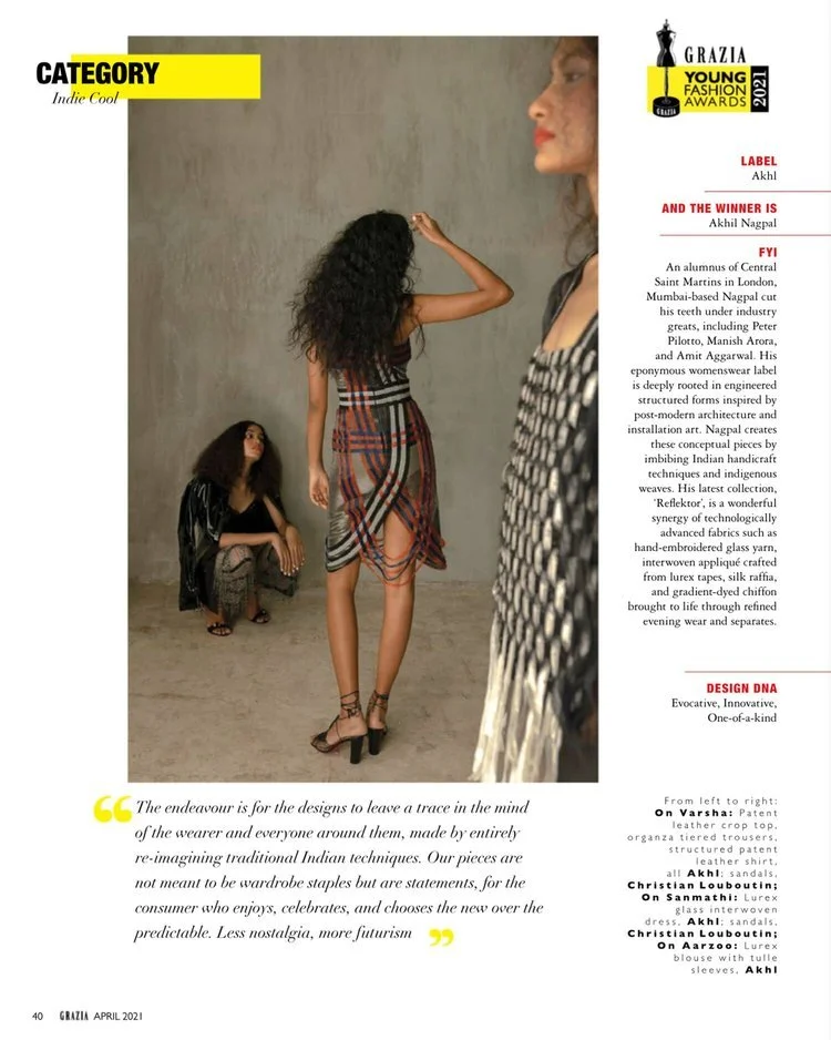 AKHL was the winner of the Grazia Young Fashion Award 2021 (Category- Indie Cool).